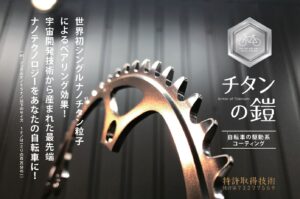 チタンの鎧とはナノチタン粒子を金属パーツ表面に塗工することで、金属同士の摩擦抵抗を減らすテクノロジーです。